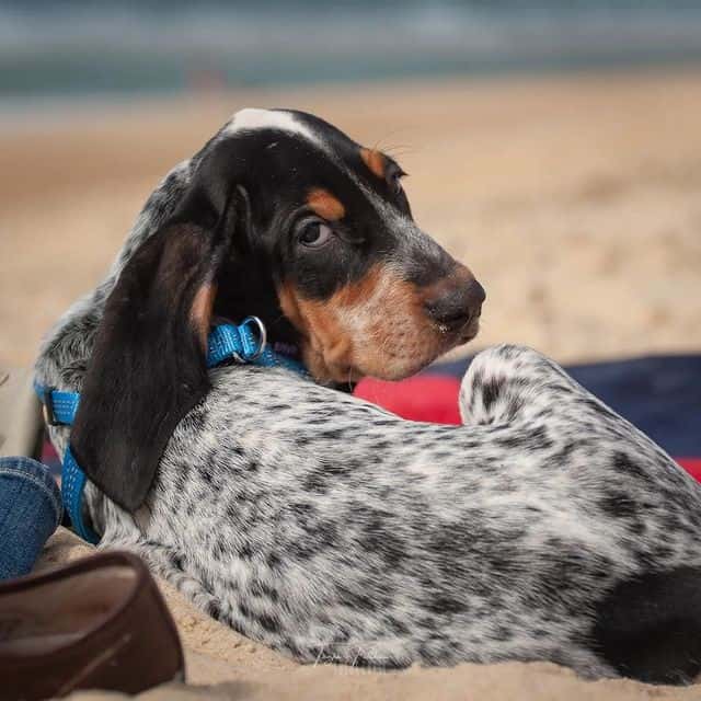 Bluetick Coonhounds are named for their “ticked” blue-and-white coats. They are hardworking hunters and affectionate family pets.
