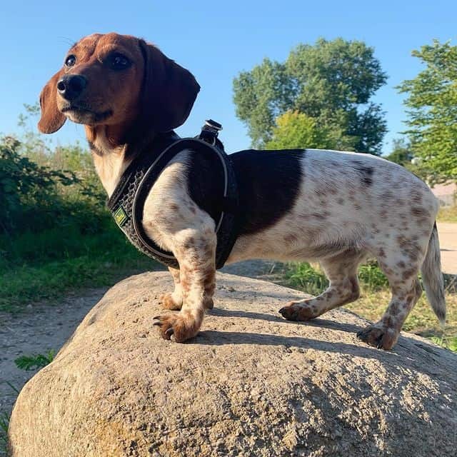 Dachshunds come in a range of colors and patterns, including the dapple pattern that gives them a spotted appearance. Their charming, bold personalities make them favorites among dog lovers.